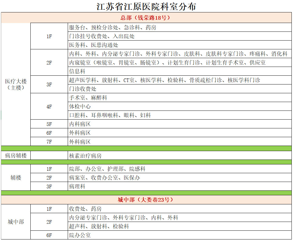 江蘇省江原醫(yī)院科室分布