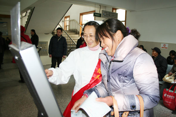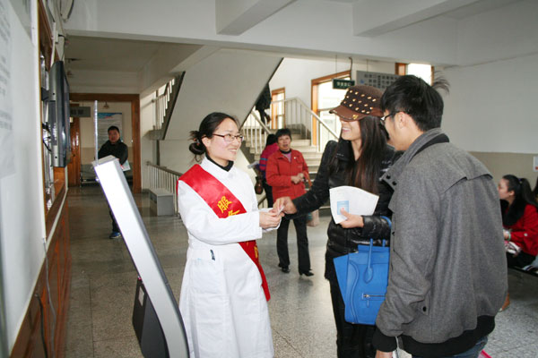 去年醫院門診樓改造,檢驗科新上了叫號排隊系統、化驗報告自助系統等,由于醫院的患者多來自偏遠的農村,為了方便他們順利就診,縮短等候排隊時間,由我所團委牽頭,組建了由15名青年職工志愿者的“服務患者,我愿我行”服務隊,利用個人休息時間,于每周三堅持為前來就診的患者提供各種志愿服務,截止到今年一月初累計服務近2600人次。