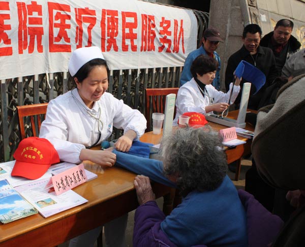 此次義診活動受到了園區(qū)工作人員和附近居民的歡迎,有150余名人員前來尋醫(yī)問診。志愿者們?yōu)樗麄儨y量血壓并指導(dǎo)如何科學(xué)用藥;熱情、細(xì)致地解答了他們對相關(guān)疾病的種種疑惑;向他們分發(fā)了甲狀腺健康自查、糖尿病健康飲食和高血壓防治等宣傳資料……當(dāng)內(nèi)科主任高蕓得知一位糖尿病老年患者因行動不便而耽誤了就診時,立刻進(jìn)行“現(xiàn)場專家門診”,詳細(xì)詢問病情,調(diào)整目前用藥劑量,并留下患者的電話幫其辦理住院預(yù)約手續(xù)。