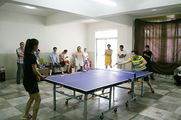 13:00,比賽正式開(kāi)始。首先開(kāi)賽的是女單比賽,比賽實(shí)行的是淘汰制,實(shí)力相差懸殊的選手,三下五除二很快拿下,被淘汰的選手依然留在現(xiàn)場(chǎng)為接下來(lái)的比賽加油助陣。比賽最為焦灼、旗鼓相當(dāng)?shù)漠?dāng)屬來(lái)自科研部的吳靜和來(lái)自行政后勤的鄒志雁,一個(gè)擅長(zhǎng)搏殺,一個(gè)不溫不火,你來(lái)我往,一直打到?jīng)Q勝局,吳靜險(xiǎn)勝過(guò)關(guān),最終贏得冠軍。