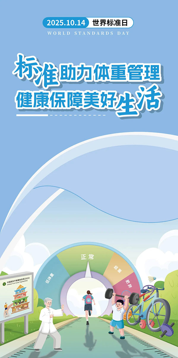 2025年10月14日是第56屆世界標準日,國家衛生健康委確定“標準助力體重管理,健康保障美好生活”為今年宣貫主題。體重作為影響健康的重要指標,其科學管理需兼顧不同人群的生理特點、生活場景與健康需求,不同人群體重管理目標怎么定?膳食營養素參考攝入量標準是什么?怎樣做到科學鍛煉,負荷有度?一起來看——