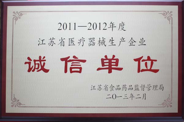 近日,我所江原實業技貿總公司喜獲“江蘇省醫療器械生產企業誠信單位”榮譽稱號,并在全省醫療器械監督管理工作暨2011~2012年度江蘇省醫療器械生產企業誠信單位表彰會議上受到表彰。