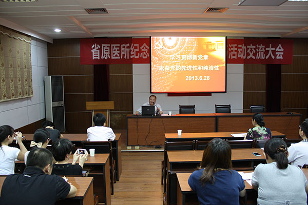 為貫徹落實黨的十八大會議精神,深入開展“基層組織建設提升年”活動,創建“三型”黨組織,夯實黨建基礎,所黨委于6月28日下午,在所學術報告廳召開紀念建黨92周年暨讀書活動交流大會。大會由所黨委副書記、紀委書記秦秋萍主持,所長羅世能,副所長包建東、謝敏浩出席了會議,全體在職黨員和入黨積極分子參加大會。
