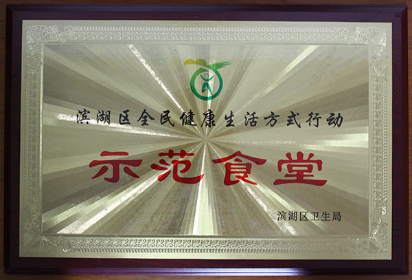 近日,我所食堂被濱湖區衛生局評為濱湖區全民健康生活方式行動示范食堂。