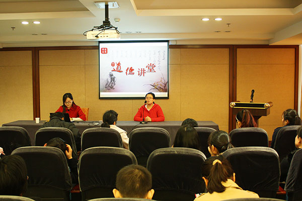 “道德講堂”安排了唱一首歌曲、看一部短片、誦一段經典、講一個故事、作一番點評“五個一”環節。當歌曲《我的未來不是夢》這熟悉的旋律響起,現場職工在4位領唱人員的帶領下一起合唱,一時間,青春追夢的激情在大家心里激蕩起深深共鳴。當全國道德模范、北京兒童醫院醫生賈立群的事跡短片播出,大家為他立足平凡崗位、畢生默默奉獻的敬業精神而感動。講堂關切青年職工生活中的不同方面,分孝親篇、尊師篇、事業篇和學習篇選摘了一些經典語句,與大家共勉。在講堂的“講一個故事”環節中,故事宣講員們將各團支部推選的身邊優秀青年(張莉、張凱、鄔宏恂、殷宇、榮曉明和吳松亮)事跡娓娓道來,講述了他們在科研、開發、臨床和行政后勤等平凡崗位上踏實工作的故事,讓在座青年了解、學習他們。