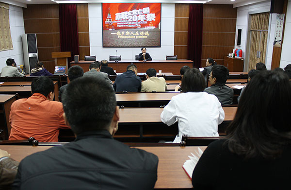 為深入開展黨的群眾路線教育實踐活動,強化學習教育,加深對踐行黨的群眾路線重要性的認識,4月10日,所黨委組織中層以上干部、黨員、入黨積極分子在所階梯教室觀看影視教育《蘇聯亡黨亡國20年祭——俄羅斯人在訴說》。