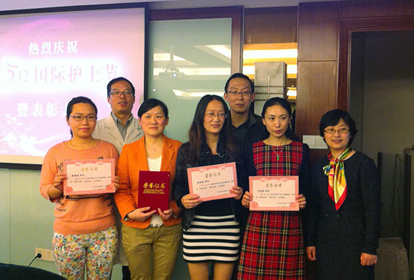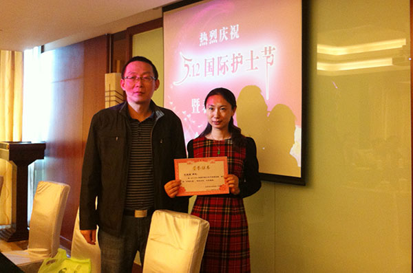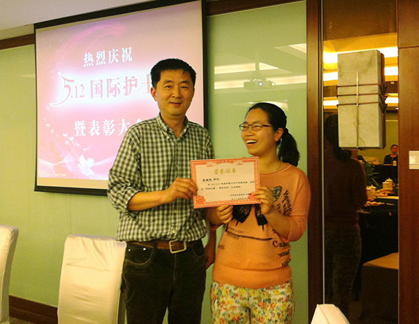 活動(dòng)開始,首先由包院長(zhǎng)代表院領(lǐng)導(dǎo)祝全院護(hù)士節(jié)日快樂!身體健康!工作愉快!對(duì)護(hù)理工作的重要性及護(hù)士們勤奮工作、優(yōu)良服務(wù)給予肯定和贊譽(yù),并對(duì)今后的護(hù)理工作提出了殷切的希望。四位院長(zhǎng)對(duì)獲得2013年度市優(yōu)秀護(hù)士楊燕飛、獲得2013年度江原“護(hù)理之星”城中部沈燕娜、內(nèi)科病區(qū)陳麗娟、外科病區(qū)戴國(guó)英進(jìn)行了表彰,并頒發(fā)了榮譽(yù)證書,鼓勵(lì)她們?cè)俳釉賲枺谧o(hù)理崗位上更加出色的工作。