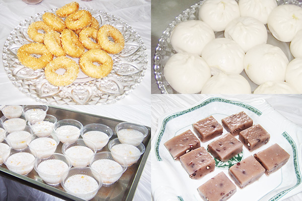 揉、搟、卷、搓,爐火閃閃,蒸氣騰騰,不一會兒工夫,一道道各式各樣、色彩繽紛的點心做成了。涼絲絲的西米露、糯篤篤的拉糕、韌質質的炸糯米團、香噴噴的四喜蒸餃、清爽爽的青菜香菇包,色香味俱全,吃在嘴里,細膩潤滑、清涼可口,讓人的心都變得柔軟起來。