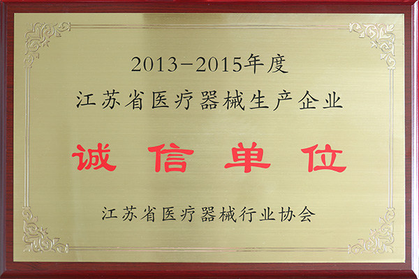 4月27日,江原實業(yè)技貿總公司被江蘇省醫(yī)療器械行業(yè)協(xié)會評為2013—2015年度江蘇省醫(yī)療器械生產企業(yè)誠信單位。