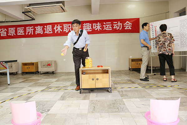 體檢結束后,老同志們來到離退休職工活動室,興致勃勃地參加離退休職工趣味運動會。本著適宜老年人身心健康、集娛樂與鍛煉為一體的原則,趣味運動會設置了猜謎答題、定點投球入簍、竹筷夾彈子三個運動項目,讓老同志們手、腦、腿并用,樂在其中。活動中歡聲笑語不斷,大家在切磋技藝的同時,享受到了快樂,找到了樂趣,展示出了老同志們積極向上的精神風貌。所黨委副書記、紀委書記秦秋萍來到運動會現場,對老同志們表示慰問,交流單位近期發展情況,鼓勵他們多多參加有益身心的文體活動,強身健體,延年益壽。賀重陽趣味運動會受到了老同志們的歡迎與好評,此項活動將作為每年的固定活動持續舉辦。(組織人事科 苗迪)