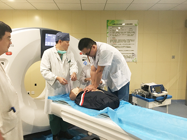 為了提高醫護人員對于突發呼吸心跳驟停患者的組織及應變處理能力,檢查醫務人員對搶救流程、搶救設備使用、心肺復蘇及除顫技能熟練掌握程度,9月13日下午,我所江原醫院放射科開展了一次“增強CT患者突發呼吸心跳驟停搶救應急演練”,內科、麻醉科、放射科、急診科等科室的醫護人員通力合作、有條不紊,迅速地進行配合搶救、安全轉運等工作,圓滿完成了本次演練活動。