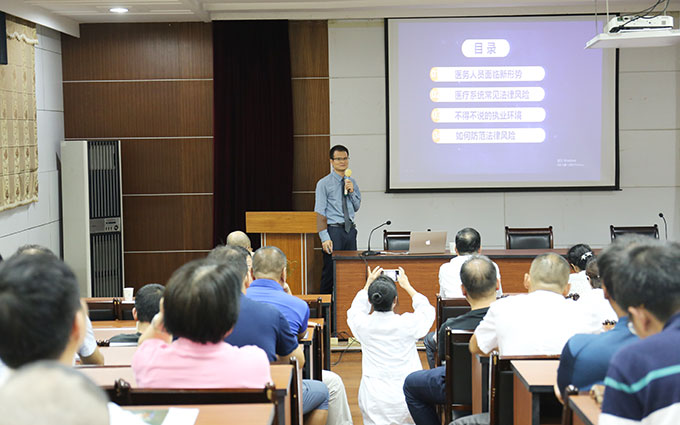 為全面貫徹落實(shí)省紀(jì)委專責(zé)監(jiān)督意見(jiàn)整改工作,根據(jù)省衛(wèi)計(jì)委行業(yè)黨委《關(guān)于在全省衛(wèi)生計(jì)生系統(tǒng)開展“以案促廉 堅(jiān)守底線”警示教育的通知》文件精神,9月28日下午,在所階梯教室,所紀(jì)委邀請(qǐng)馬駿律師作題為“新形勢(shì)下醫(yī)療系統(tǒng)刑事法律風(fēng)險(xiǎn)”的講座。大會(huì)由所長(zhǎng)、黨委書記謝敏浩主持,全所班組長(zhǎng)以上干部、重點(diǎn)崗位人員、江原醫(yī)院醫(yī)務(wù)人員近一百人參加講座,接受教育。