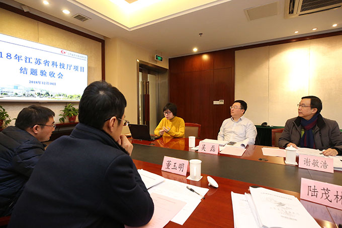 2018年12月18日,受江蘇省科技廳委托,無錫市科技局組織專家對我所承擔的3項江蘇省科技計劃項目“Legumain酶靶向納米聚集雙功能腫瘤分子影像探針的研究(項目編號:BK20151118)”、“一種新型18F定位標記膜聯(lián)蛋白V變體的制備及凋亡顯像研究(項目編號:BK20151119)”、“PET報告基因顯像劑18F-FHBG及其配套試劑盒的研制(項目編號:BE2015616)”召開結(jié)題驗收會議。無錫市科技局農(nóng)社處吳磊處長蒞臨指導(dǎo);邀請江蘇省微生物研究所有限責任公司陸茂林所長、江南大學(xué)董玉明副院長、無錫市第二人民醫(yī)院倪建明主任、韓志君主任、無錫市第四人民醫(yī)院郁春景主任作為本次驗收組專家成員;我所謝敏浩所長以及相關(guān)科研管理人員出席會議。