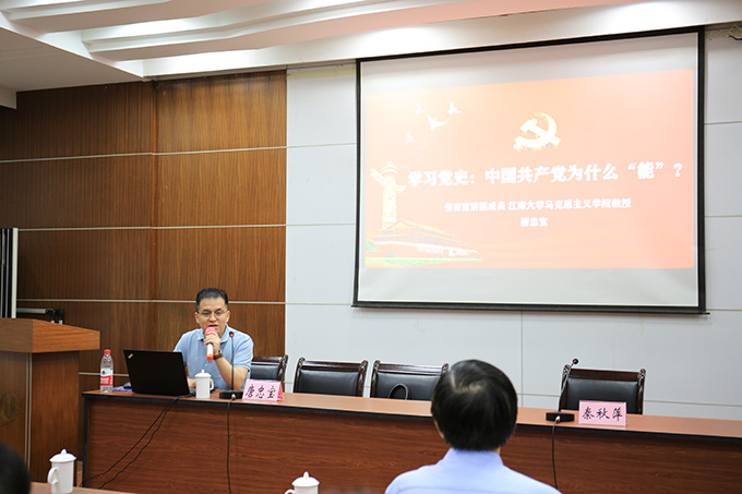 深學黨史,汲取力量。為深入學習黨史,所黨委邀請了黨史學習教育省委宣講團成員、江南大學馬克思主義學院教授、哲學博士唐忠寶作了《學習黨史:中國共產黨為什么能?》的黨史專題輔導講座。唐忠寶教授結合大量史實和生動事例,從反對歷史虛無主義思潮、樹立共產主義遠大理想、堅持實事求是思想路線、學史明理增信崇德力行四個方面進行了全面系統的宣講,主旨清晰、層次分明、資料翔實、數據準確、生動形象,既有深入淺出的理論闡述,又有旁征博引的精彩分析,幫助學員們樹立正確的黨史觀,透徹理解中國共產黨為什么“能”,深刻把握黨史學習教育的重大意義。