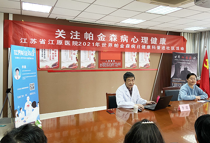 醫院內科副主任李建為社區居民介紹了“4月11日世界帕金森病日”的由來和2021年度的活動主題“關注帕金森病心理健康”,結合臨床病例生動講解了帕金森病的運動癥狀和非運動癥狀,指出了對帕金森病的多種認識誤區,明確了規范診治的方法手段,強調了“早發現、早診斷、早治療”的健康管理理念,為社區居民上了一堂系統、專業、全面的帕金森病健康科普課。講座后,活動邀請患者代表分享了自己數年來堅持科學抗“帕”的經歷與心得,向現場的同齡人傳遞出“面對疾病,我坦然;面對生活,我微笑;面對世界,我依然擁有明天”的抗“帕”正能量。最后,李建副主任解答了聽眾們的疾病困惑,給出了健康建議。(江蘇省江原醫院 內科)